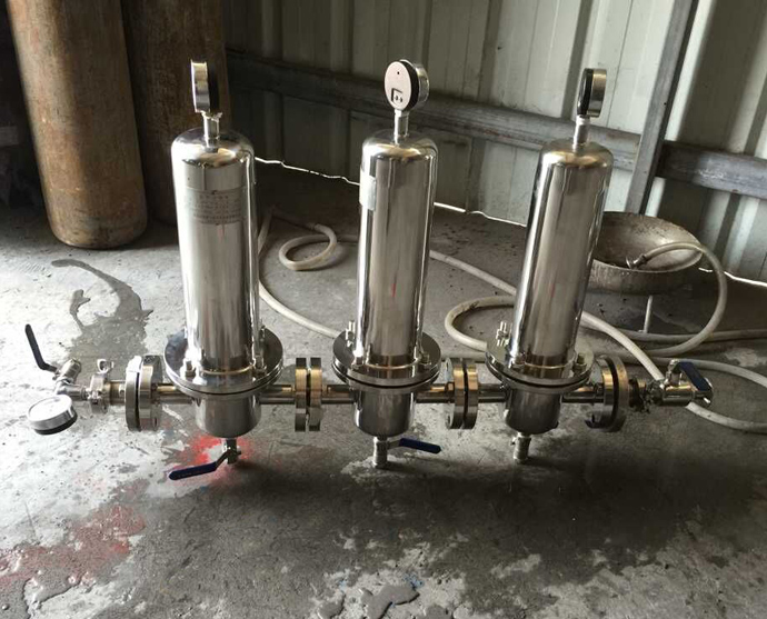 濾芯采用疏水性聚四氮乙烯或聚丙烯折疊式微孔濾膜。濾器為優(yōu)質進口不銹鋼(304/316L),按GMp標準設計制造,高效、節(jié)能、安全、可靠,廣泛用于發(fā)酵空氣,針劑用空氣、情性氣體的凈化(可作為空氣過菌器、分過濾器)、蒸餾水罐的“呼吸器”。除菌氣體過濾器是專為制藥工業(yè),食品工業(yè)的貯罐氣體交換時達到除菌之目的而設計制造的。氣體過濾精度為 0.02um 微粒,效率達到99.99%。過濾能力可在0.1—1OOm3/min范圍內選用。介質厚度僅為0.8mm ,孔徑均勻穩(wěn)定、氣體阻力小、再生方便。濾芯在一般情況下可使用二至三年,再生后可延長四到六年。也可用于滅菌蒸汽的過濾。此過濾器可徹底解決空氣的染菌問題,而且可提高消毒滅菌的質量,從而達到GMP和無菌衛(wèi)生要求。