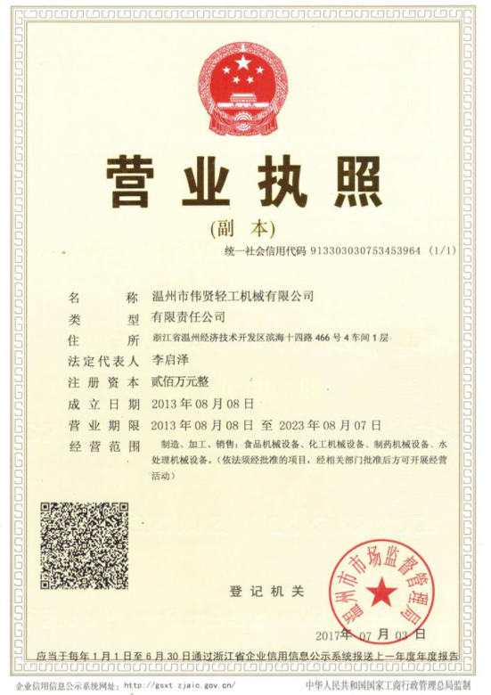 溫州市偉賢輕工機(jī)械有限公司 地址:浙江溫州濱海工業(yè)園區(qū)十四路466號 電話:0577-86374818 86899137 86899139 傳真:0577-86899138 手機(jī)/微信:13634277318 18858825318 QQ:243687277 郵箱:lzjxsb@163c.com 阿里旺鋪:lzjxsb.1688.com www.chinaweixian.com m.lwpk-valve.cn